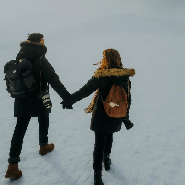 But earlier that day, I saw a local photographer shooting a couple in the snow. I remember thinking, “This is such a beautiful place and I don't have anything snowy or wintery in my portfolio yet. I wish I also had a shoot here.” And, not even a full hour later, Hao & Fang — honeymooners from Singapore — spotted the Leica on my neck and walked over. Just like that. No plans, no booking. Just presence, timing… and maybe a little qarah.